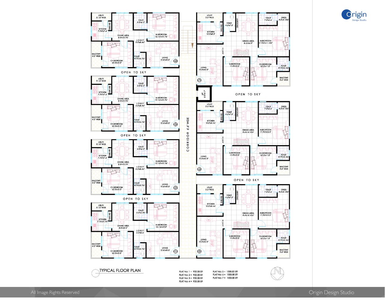 Multi-storied Apartment Building – Designed for Builder & Developer with 4 Units of 2 BHK Apartments and 3 Units of 3BHK Apartments on Each Floor, Consisting of total 5 Floors.