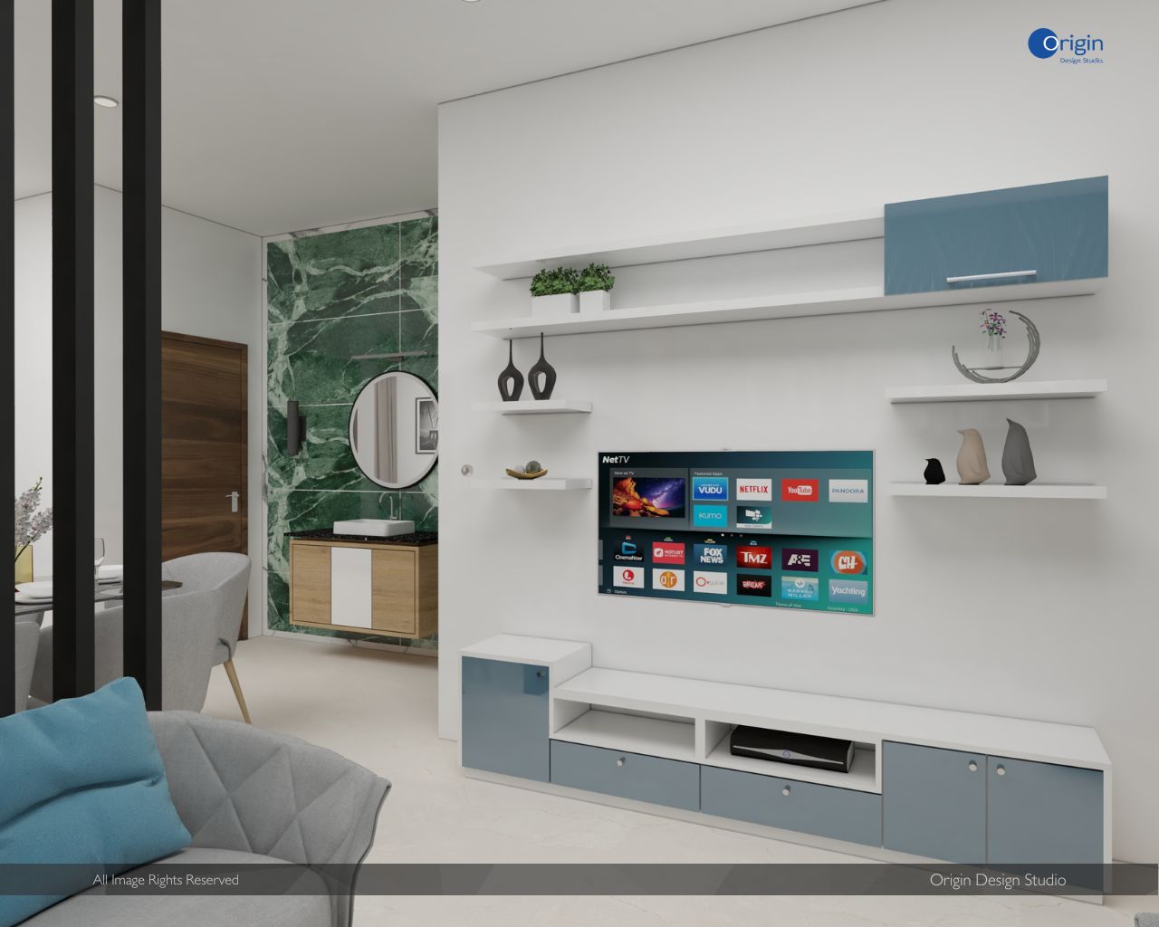 A Design & Build Project with Full Home Interiors from False Ceiling, Electrical & Lighting, Modular Kitchen, Custom Carpentry Wardrobes and Cabinetry.