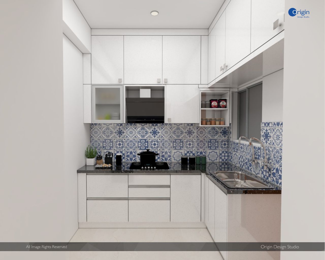 Project Features: Painted Metal Fins, Granite Countertops, Acrylic Laminate Finishes and High Gloss Laminate Finishes, Handmade Dado Tiles, Large Format Tiles for Dining, and Premium Sanitary Fixtures.