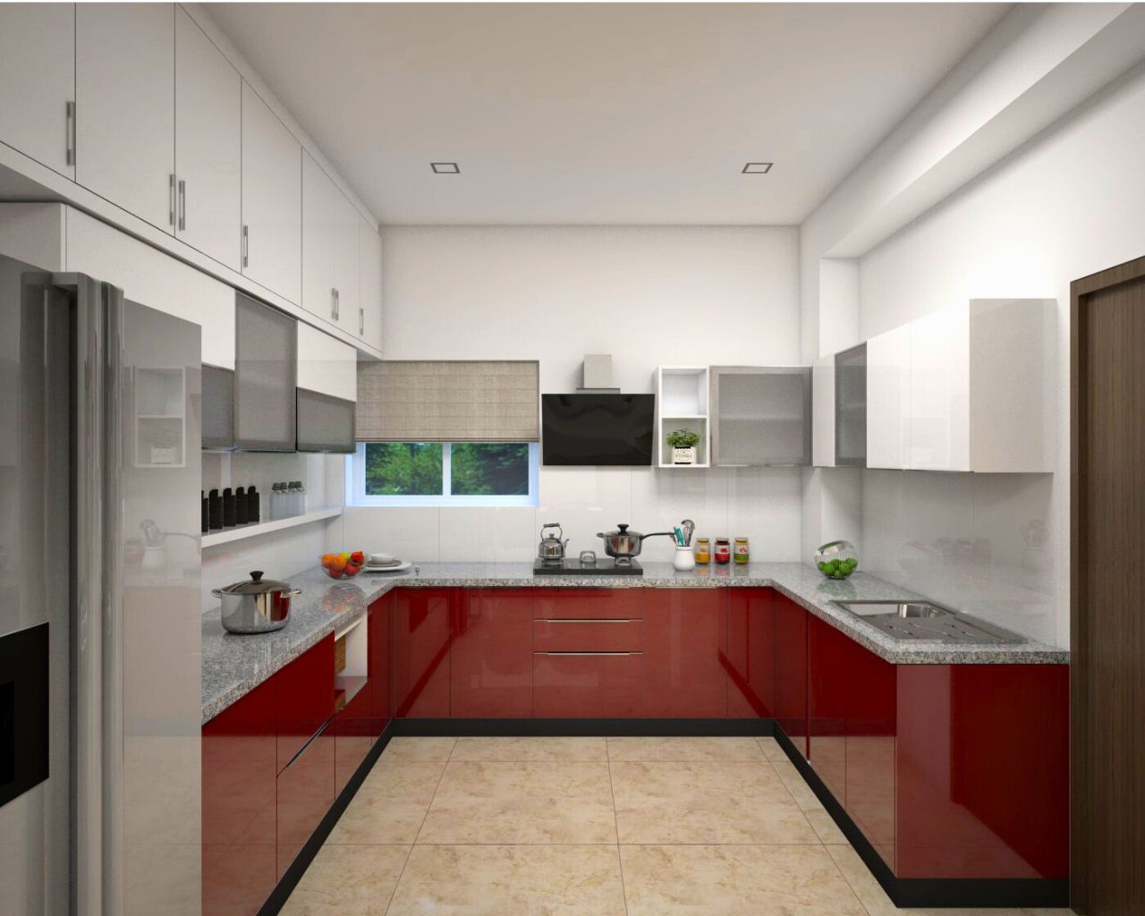Project Features: Custom Pooja Unit, Wood Ceiling, Modular Kitchen and Wardrobes, Granite Countertops, High Gloss Laminate Finishes, Profile Glass Shutters, and Premium Sanitary Fixtures.